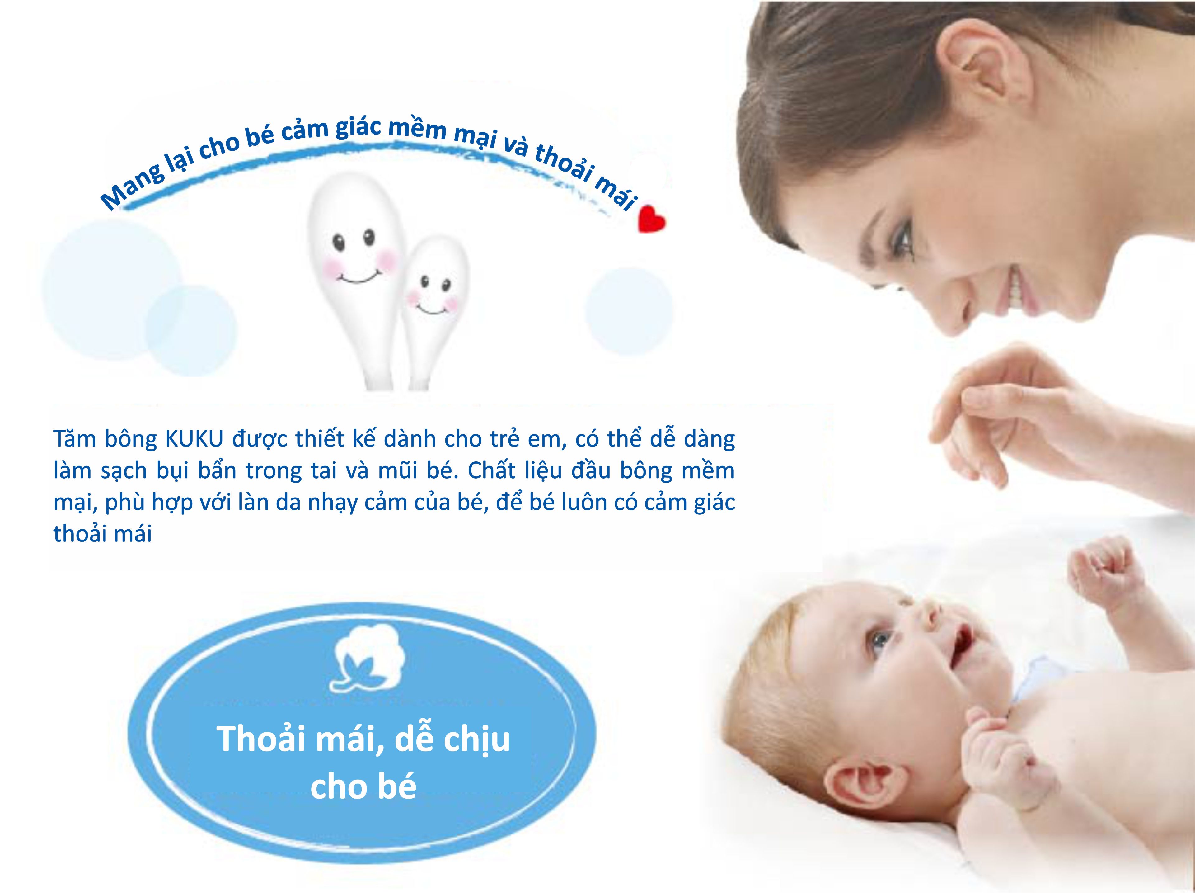 - Đầu bông thiết kế nhỏ dể làm sạch sâu cho bé.