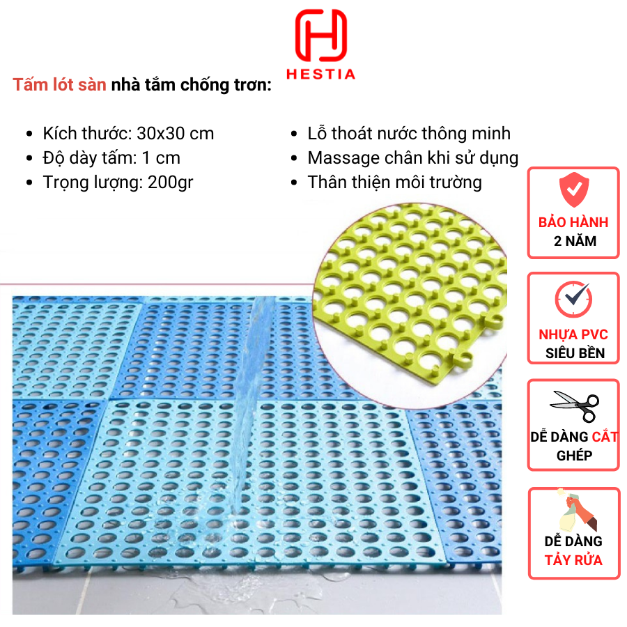 Thảm chống trơn trượt nhà tắm size 30x30cm tiện dụng, Tấm thảm nhựa lót sàn nhà tắm kháng khuẩn chống trượt Thảm nhựa ghép chống trơn thích hợp trải chống trơn nhiều vị trí 1,