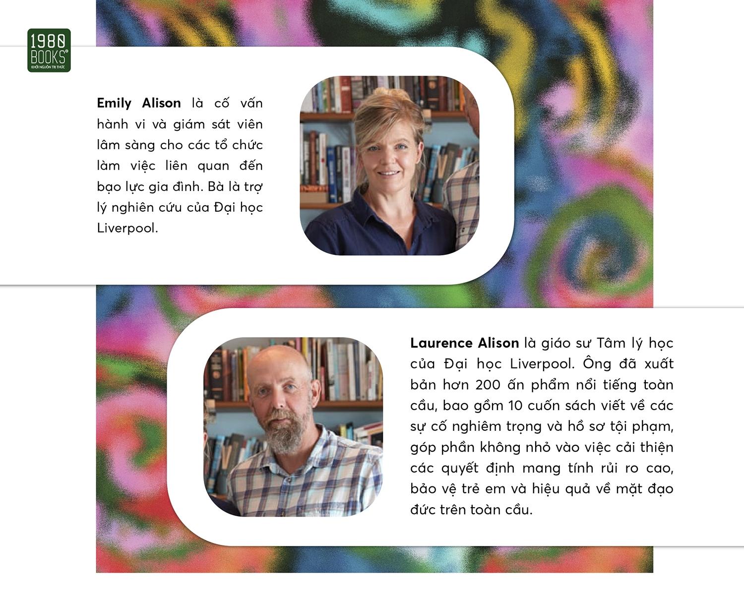 Laurence Alison là giáo sư Tâm lý học của Đại học Liverpool. Ông đã xuất bản hơn 200 ấn phẩm nổi tiếng toàn cầu gồm 10 cuốn sách viết về các sự cố nghiêm trọng và hồ sơ tội phạm, góp phần không nhỏ vào việc cải thiện các quyết định mang tính rủi ro cao, bảo vệ trẻ em và hiệu quả về mặt đạo đức trên toàn cầu.