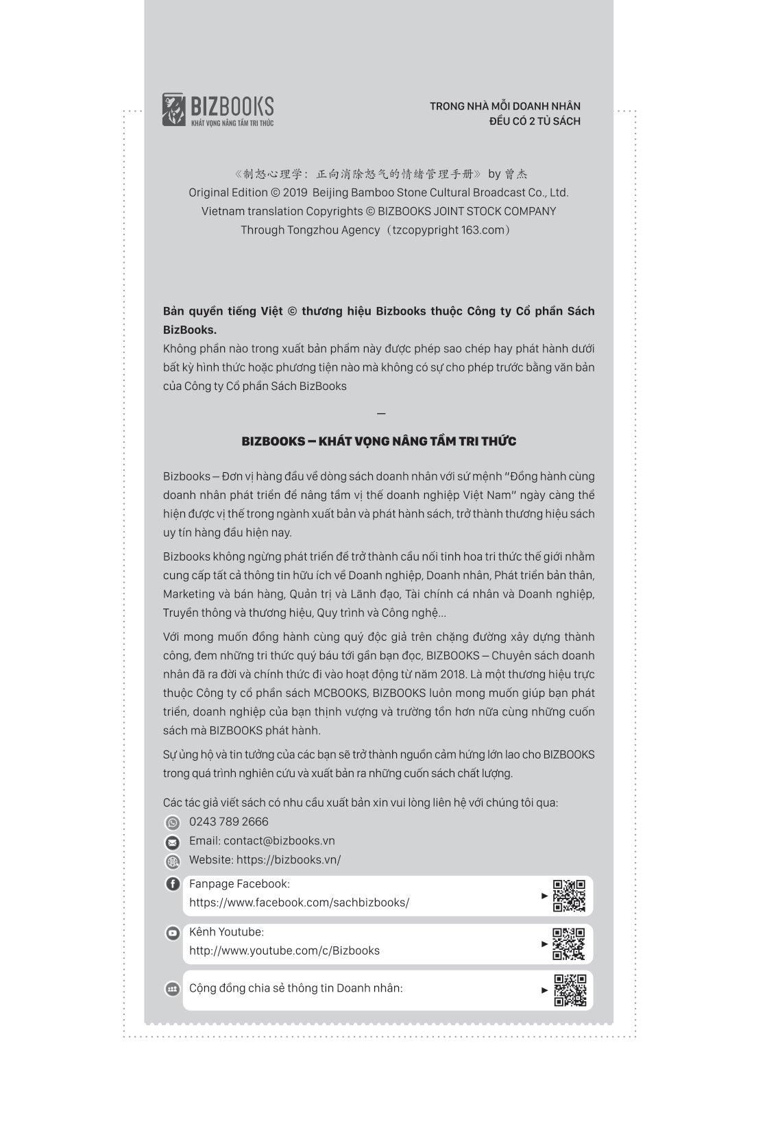 Muốn kiểm soát được cơn giận của bản thân, chúng ta cần phải có nghị lực và tự nhận thức về hậu quả của nó mang lại. Một khi bạn hiểu được nguyên nhân gây ra sự tức giận của m.ình, bạn sẽ có thể kiểm soát tốt nhất và biến nó thành động lực tích cực để có một cuộc sống tốt đẹp hơn. Hy vọng cuốn sách này sẽ giúp bạn có thể kìm nén được sự tức giận của m.ình một cách hiệu quả, cải thiện mối quan hệ với những người xung quanh và thực sự sống một cuộc sống hạnh phúc và bình yên,