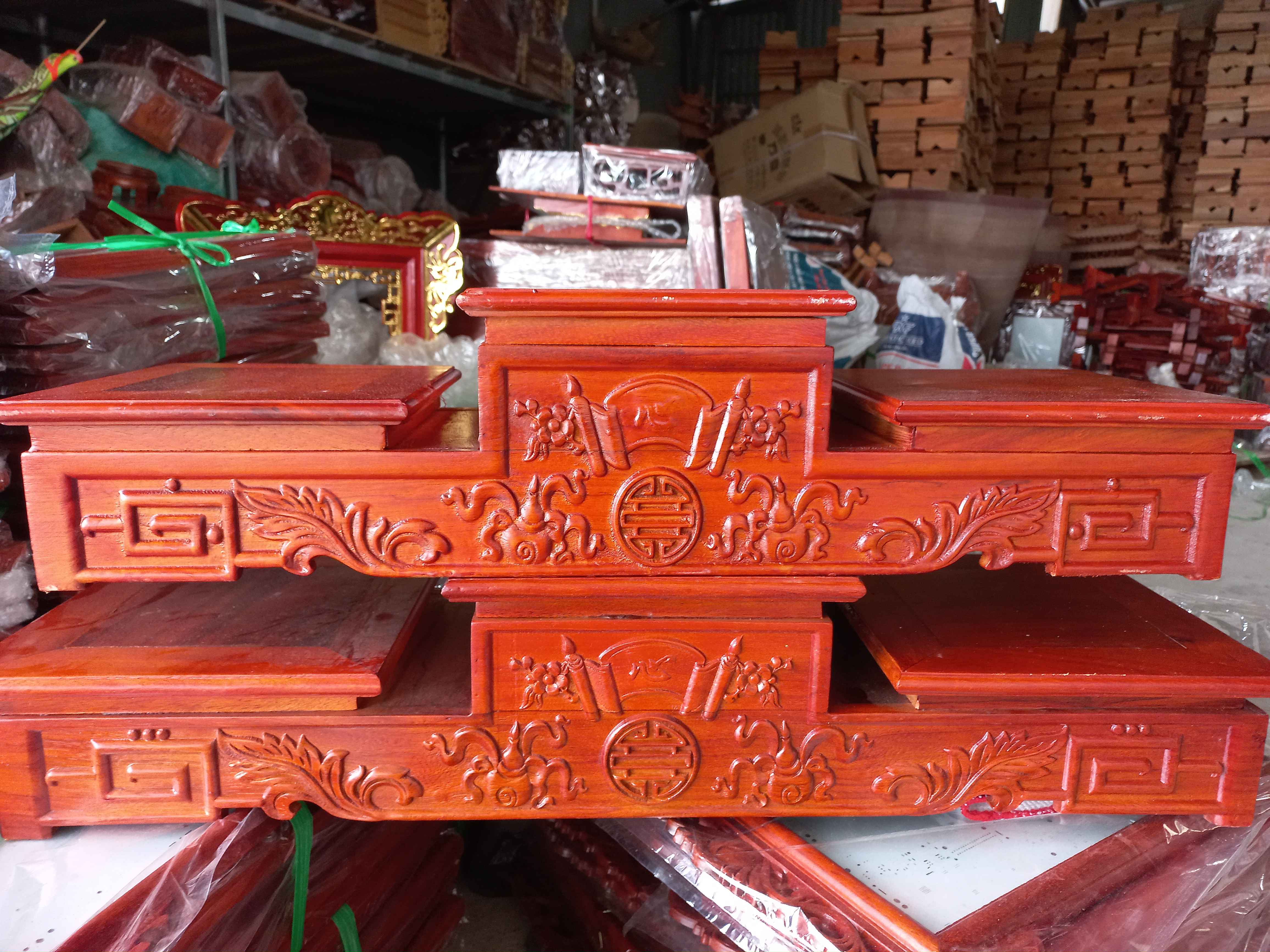 Đế Tam sơn gỗ hương, tam cấp bát hương Tam cấp thờ có nhiều kích thước mặt 14,16,18,20,22,25