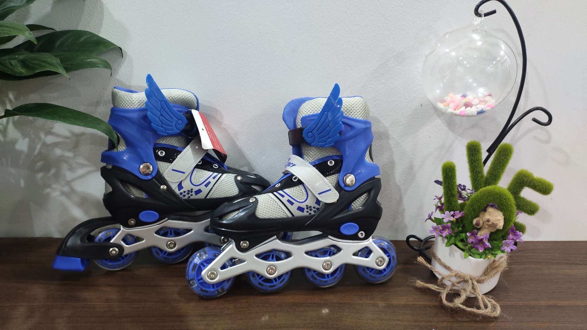 - Giày Trượt Patin Longfeng 906 Đại Nam Sport LF906 được thiết kế cải tiến với 2 bánh dọc trước, 2 bánh song song ở sau giúp cho bé trượt dễ dàng hơn. - Bánh xe