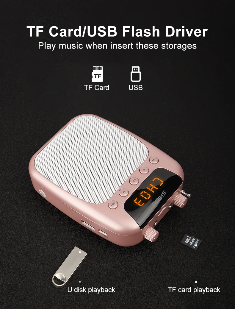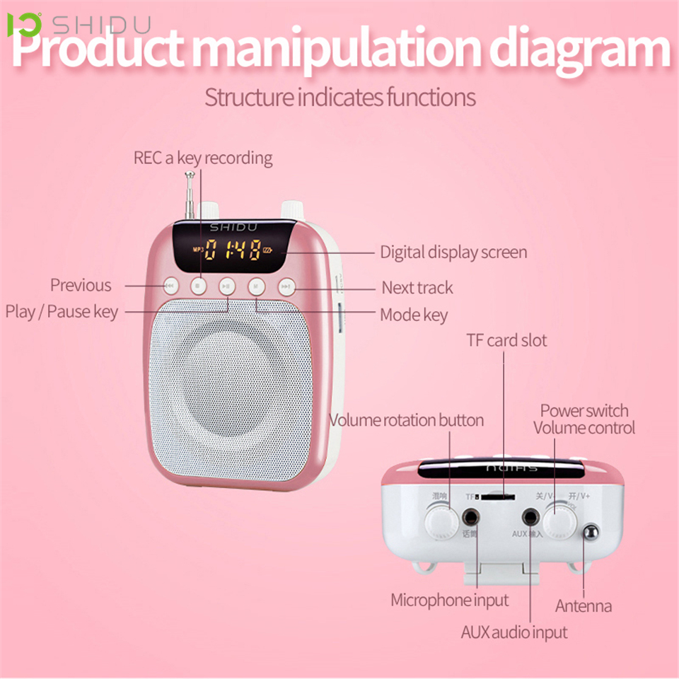 Máy Trợ Giảng Có Dây Shidu SD-M100 Cho Giáo Viên - Hàng Chính Hãng. SHIDU M100 Mini Portable Rechargeable Bluetooth Speaker with Wired Microphone Headset 10W 1800mAh Supports MP3 Format Audio for Teacher, Taxi Driver,