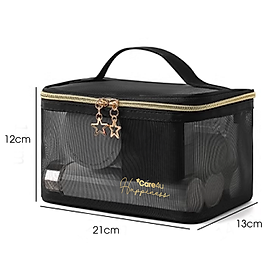 Kích thước: 21x12x13 cm Mô tả sản phẩm: Túi đựng mỹ phẩm cao cấp Care4u được thiết kế sang trọng, thanh lịch với dạng túi lưới thoáng khí siêu nhẹ, giúp bạn thuận tiện quan sát