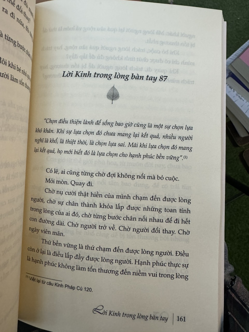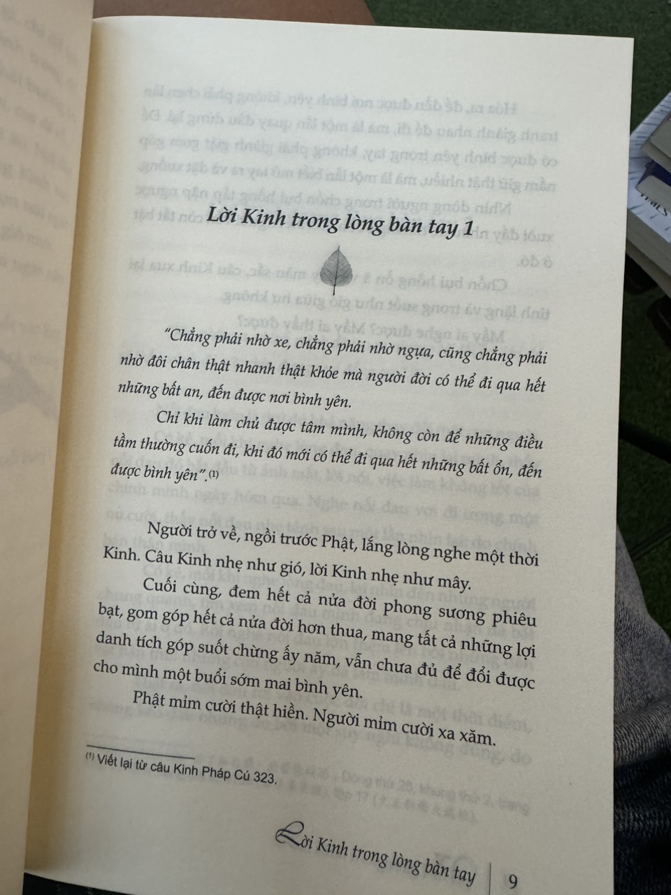 Ngày xư Người mang tuổi hai mươi của mình, xuôi dòng, về nơi phố thị; ta mang tuổi hai mươi của mình, ngược dòng, về khép cửa, chép những câu Kinh xưa. Mỗi người về gom hết những tháng năm tuổi trẻ để vẽ ra cho mình một cuộc hành trình đi qua cuộc đời này. Kẻ ngược dòng, người xuôi dòng. Ngược hay xuôi đều có khó khăn của nó. Cuộc hành trình duy nhất người ta không thể nhìn thấy kết thúc chính là cuộc sống. Lâu lâu, ta lại ghé về phố thị, tháng 5, có hương ngọc lan thơm nhè nhẹ, nhìn dòng người ngược xuôi một lát, rồi về. Lâu lâu, người lại đến ngồi dưới hiên chùa, nhìn một đoá sen trắng vừa nở, lắng lòng, nghe một thời Kinh, rồi đi. Người về ngồi trước Phật, chẳng cầu xin gì, chỉ để tâm tĩnh lặng như mặt hồ sớm mai, để soi mặt mình trong đó, xem có khác xưa nhiều không. Để biết mình phải buông bỏ điều gì, giữ lại điều gì. Để được nói: “Thưa Người, con đã về