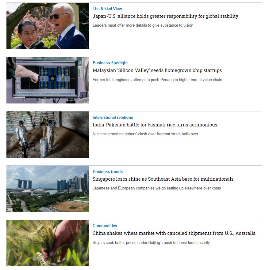 Mỗi tuần, Nikkei Asia xuất bản hơn 16,000 ấn phẩm đến tay độc giả của 30 quốc gia. Nikkei là thương hiệu báo tài chính uy tín và lớn nhất thế giới, mỗi ngày tại Nhật Bản phát hành 4 triệu bản. Tập đoàn còn sở hữu các đầu báo uy tín khác như Financial Times, Dealstreet Asia,