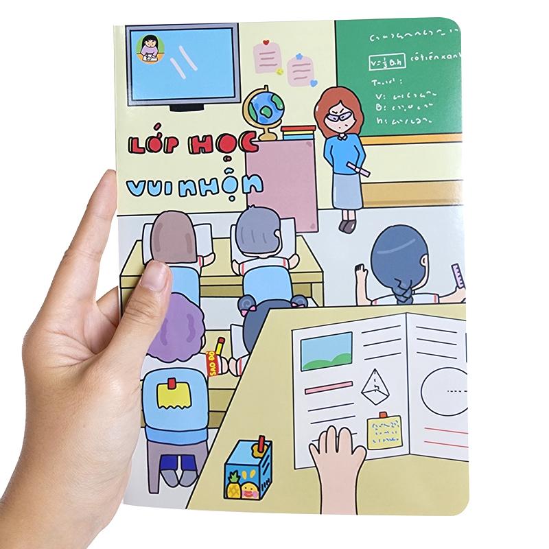 Bìa vở trang trí hình ảnh dễ thương, màu sắc nổi bật, tạo cảm hứng cho các em trong quá trình học tập.