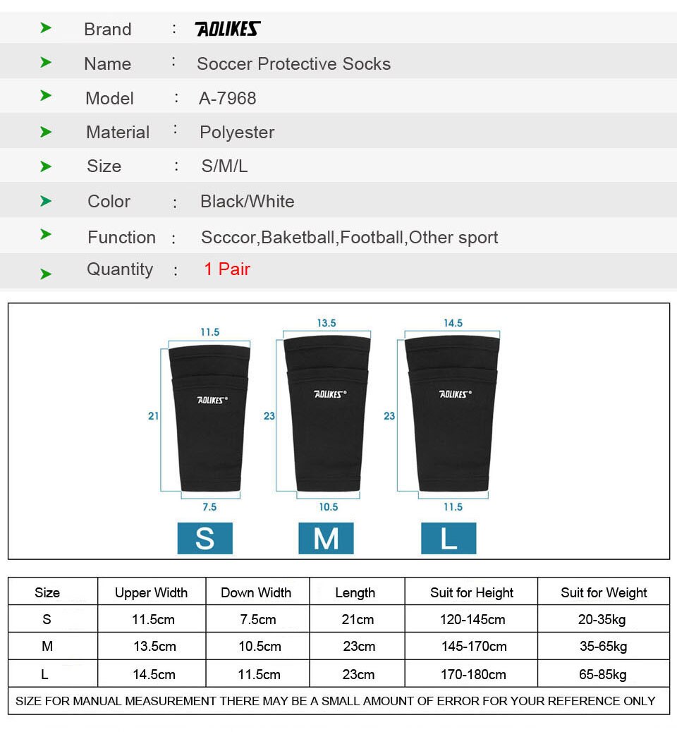AOLIKES 1 Pair Soccer Protective Socks Shin Guard With Pocket For Football Shin Pads Leg Sleeves Support Adult Calf Support Sock