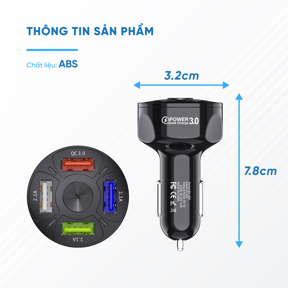 Mua tại TiktokTẩu Sạc Xe Ô Tô 4 Cổng USB Công Nghệ Sạc Nhanh QC 3.0A THÔNG TIN SẢN PHẨM: