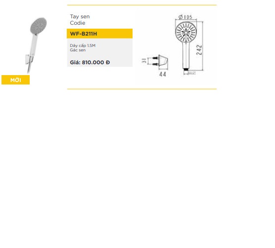 Tay dây sen WF-B211H American Standard  – đã bao gồm tay dây sen, gác sen Thông số kỹ thuật  - Loại sản phẩm : Tay dây sen ba chức năng - Dây sen dài 1500mm, đường kính