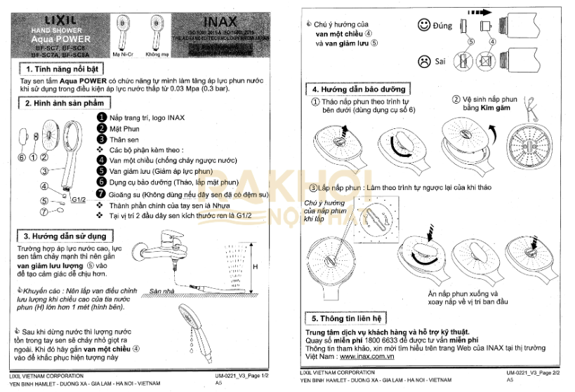 Tay sen tắm tăng áp inax BF-SC7 , BF-SC8 có massage, dễ vệ sinh I noithatphuongtracom