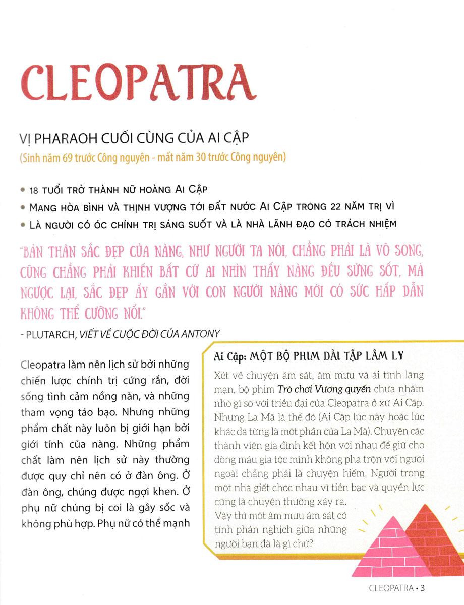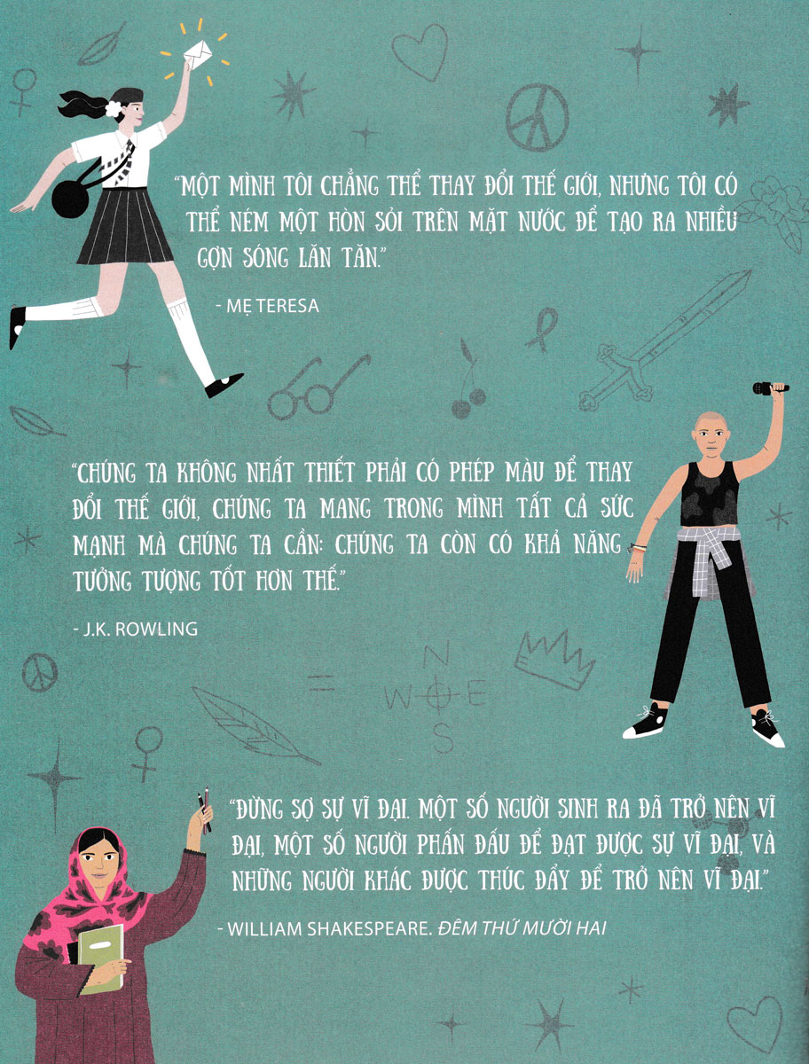 Ngày nay chúng ta may mắn: hầu hết phụ nữ có được sự tự do và sự tự tin để đi theo bất cứ hướng nào mình thích. Chúng ta cũng có những người đi trước làm hình mẫu. Họ đã mở đường cho chúng ta. Nhưng các cô gái trong cuốn sách này thường là những người tiên phong trong lĩnh vực của họ, không có ai để noi theo ngoài chính bản thân mình. Mary Shelly xuất bản tiểu thuyết khoa học đầu tiên trong lịch sử, Mary Pickford tạo ra một ngôi sao điện ảnh, còn Nellie Bly đi tiên phong trong mảng phóng sự điều tra – tất cả đều sống trong kỷ nguyên mà phụ nữ được bảo phải ngồi yên và không được lên tiếng. Xã hội không kỳ vọng nhiều ở những cô gái này, vậy nên họ phải kỳ vọng nhiều hơn từ chính bản thân mình. Mặc dù chúng ta đã đi được một chặng đường dài, vẫn cần có sự tiến tới và và vẫn có những con đường cho những nhà tiên phong tuổi “teen” mới dấn bước.