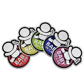 Tem BABY IN CAR trang trí xe hơi ô tô có 5 màu thời trang: xanh cô ban, xanh lá cây, đỏ, hồng và vàng cực đẹp Kích thước: 10x8 cm Chất liệu: Nhôm Cách