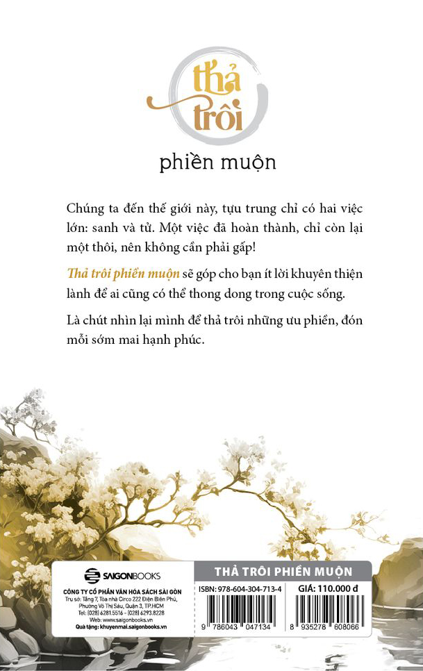 Cuốn sách Thả trôi phiền muộn này gồm phần lớn các bài tự dịch mà tác giả đã tổng hợp được trong những năm qua, đồng thời cũng là nơi tác giả trải lòng mình để mang đến những câu chữ đầy tính nhân văn về duyên phận cuộc đời và sự hạnh phúc của nhân sinh. Với "Thả trôi phiền muộn", những câu chuyện đã được kể, muộn phiền theo đó cũng bay đi, biết yêu thương thân tâm mới sống được trọn vẹn