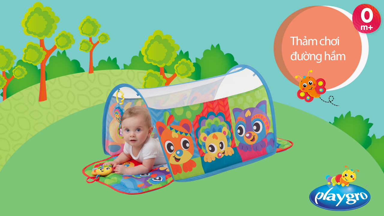 Thảm chơi đường hầm Playgro Honey Bee Bear Activity Tunnel Gym, cho bé sơ sinh đến 24 tháng
