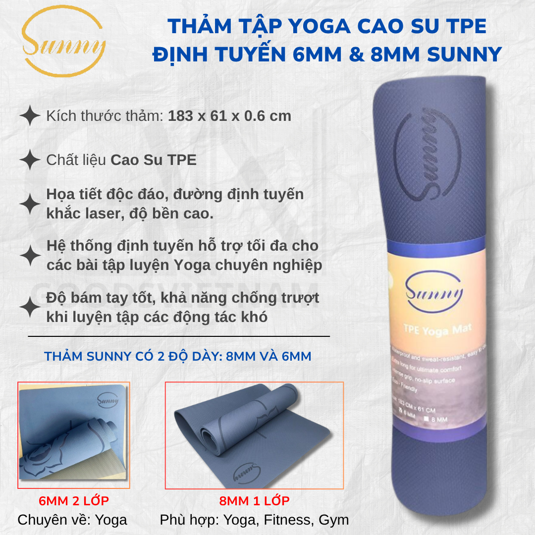 ✨Thảm Tập Yoga Cao Su Định Tuyến SUNNY Siêu Bám Tay, Độ dày 6mm và 8mm - Tập Yoga, Fitness, Gym