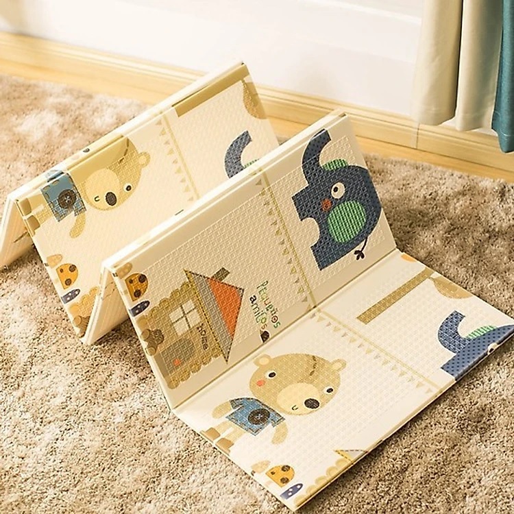 Thảm Xốp Gấp Gọn Chống Thấm, Thảm XPE 2 Mặt Phủ Silicon Chống Trơn, Chống Ngã, Cho Bé Tập Bò Kèm Túi