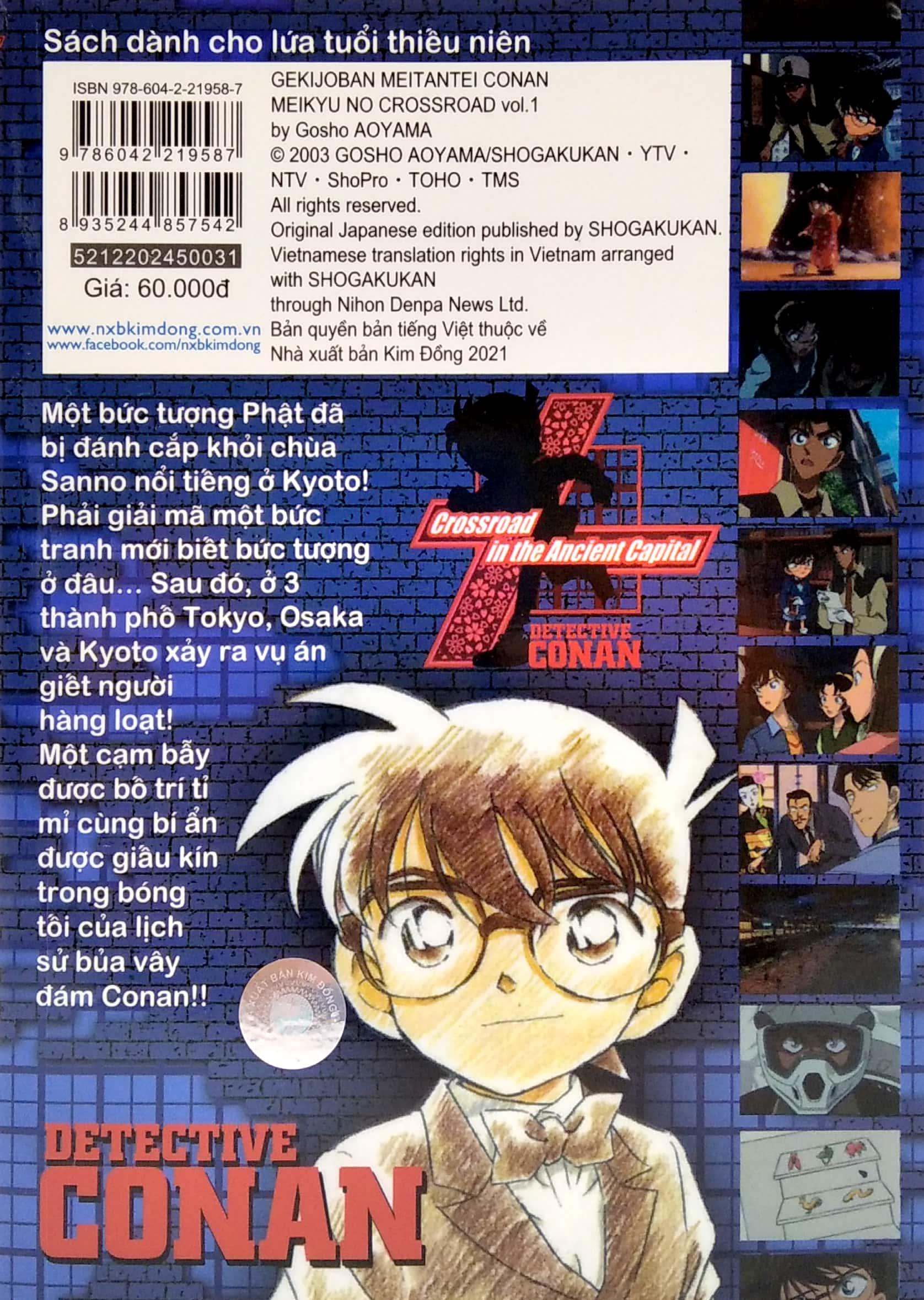 Mua tại TiktokThám Tử Lừng Danh Conan Hoạt Hình Màu: Mê Cung Trong Thành Phố Cổ - Tập 1 Một bức tượng Phật đã bị đánh cắp khỏi chùa Sanno nổi tiếng ở Kyoto! Phải giải mã một bức tranh mới biết bức tượng ở đâu… Sau đó, ở 3 thành phố Tokyo, Osaka và Kyoto xảy ra vụ án giết người hàng loạt! Một cạm bẫy được bố trí tỉ mỉ cùng bí ẩn được giấu kín trong bóng tối của lịch sử bủa vây đám Conan!!