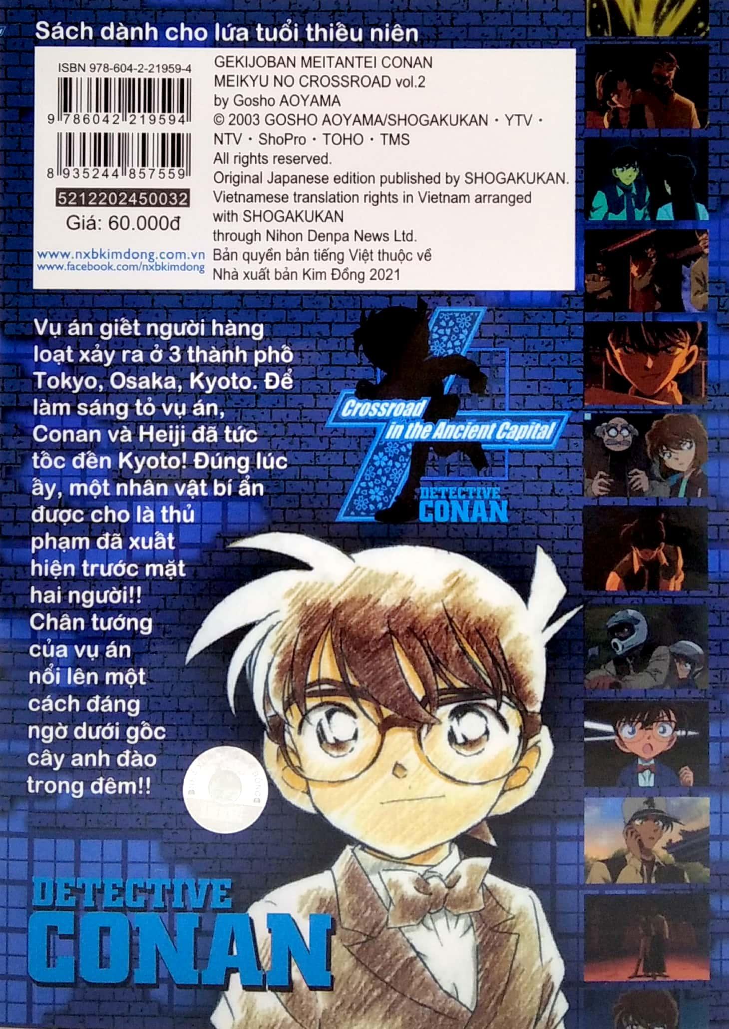 Mua tại TiktokThám Tử Lừng Danh Conan Hoạt Hình Màu: Mê Cung Trong Thành Phố Cổ - Tập 2 Vụ án giết người hàng loạt xảy ra ở 3 thành phố Tokyo, Osaka, Kyoto. Để làm sáng tỏ vụ án, Conan và Heiji đã tức tốc đến Kyoto! Đúng lúc ấy, một nhân vật bí ẩn được cho là thủ phạm đã xuất hiện trước mặt hai người!! Chân tướngcủa vụ án nổi lên một cách đáng ngờ dưới gốc cây anh đào trong đêm!!