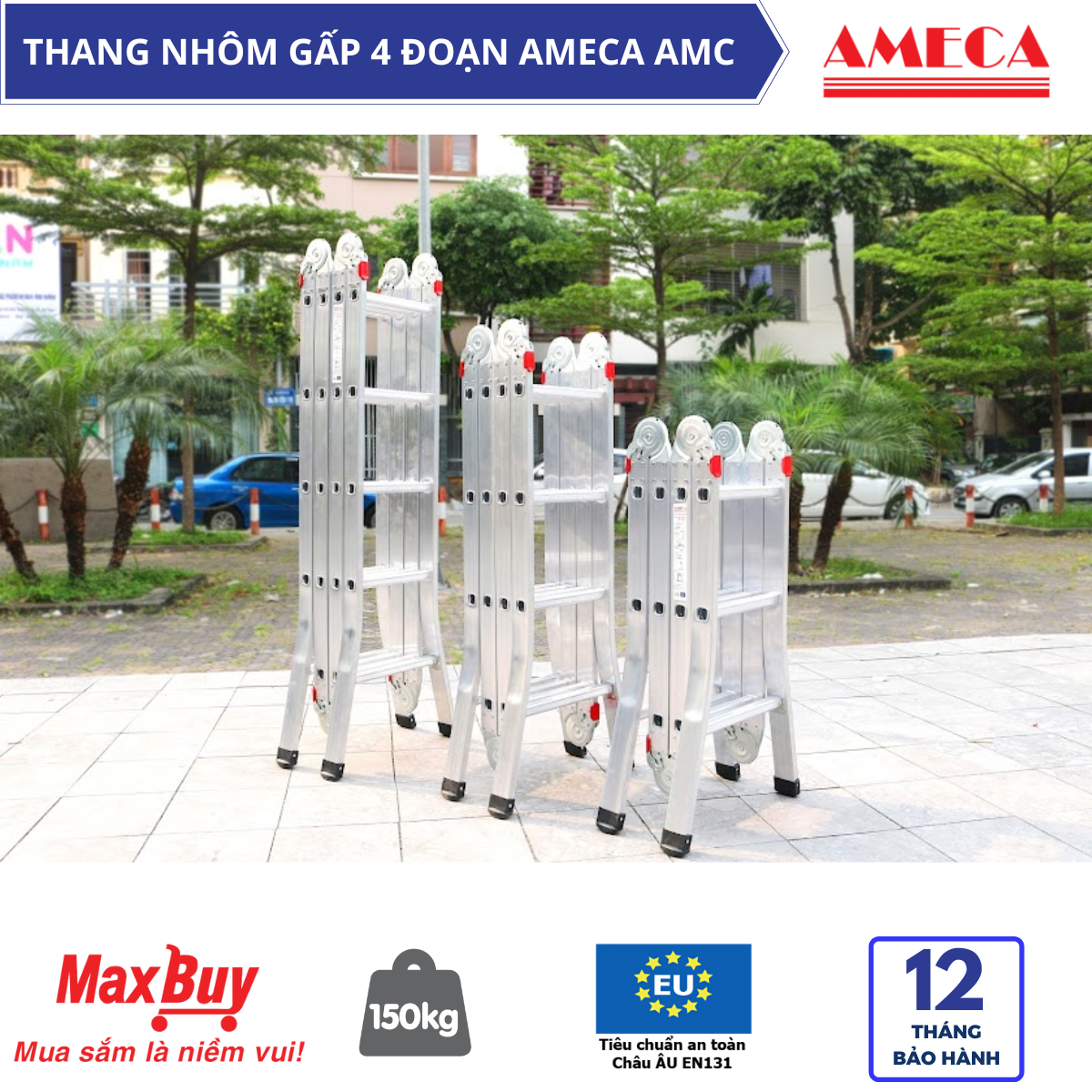 Bạn đang cần mua một chiếc thang nhôm đa năng, linh hoạt, chất lượng bền và hơn nữa là giá thành rẻ ? Thang nhôm gấp 4 đoạn Ameca là sản phẩm hoàn hảo dành cho bạn. Sản phẩm có thiết kế linh hoạt, sản xuất theo dây chuyền công nghệ Mỹ cho chất lượng an toàn chuẩn EU.