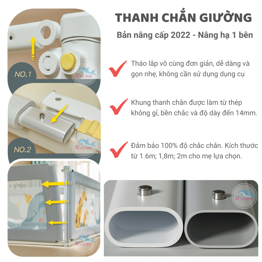 Mua tại TiktokTHANH CHẶN GIƯỜNG NÂNG CẤP 2021 - NÂNG HẠ 1 BÊN - BẢN CAO 103CM Nếu mẹ đã từng phải thót tim với những pha ngã lộn nhào của con, hay đêm đã từng trằn trọc mất ngủ vì sợ bé té thì nên sắm ngay thanh chặn giường cho bé. Thanh chặn giường với thiết kế thông minh dạng trượt, chắc chắn sẽ là trợ thủ đắc lực trong việc trông giữ bé, mẹ cũng yên tâm với giấc ngủ ngon. Hơn thế nữa, những họa tiết ngộ nghĩnh cũng hỗ trợ bé rất tốt trong việc quan sát, nhìn ngắm. THÔNG TIN SẢN PHẨM: