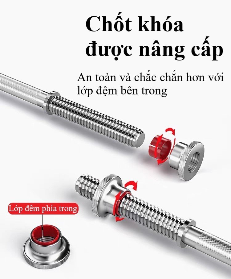 ĐẶC BIỆT: Thanh đòn tạ mới cải tiến hơn với KHÓA an toàn, gioăng, tránh trường hợp trơn, tuột bánh tạ...Dễ dàng thay đổi, điều chỉnh số lượng bánh tạ, phù hợp với từng bài tập.