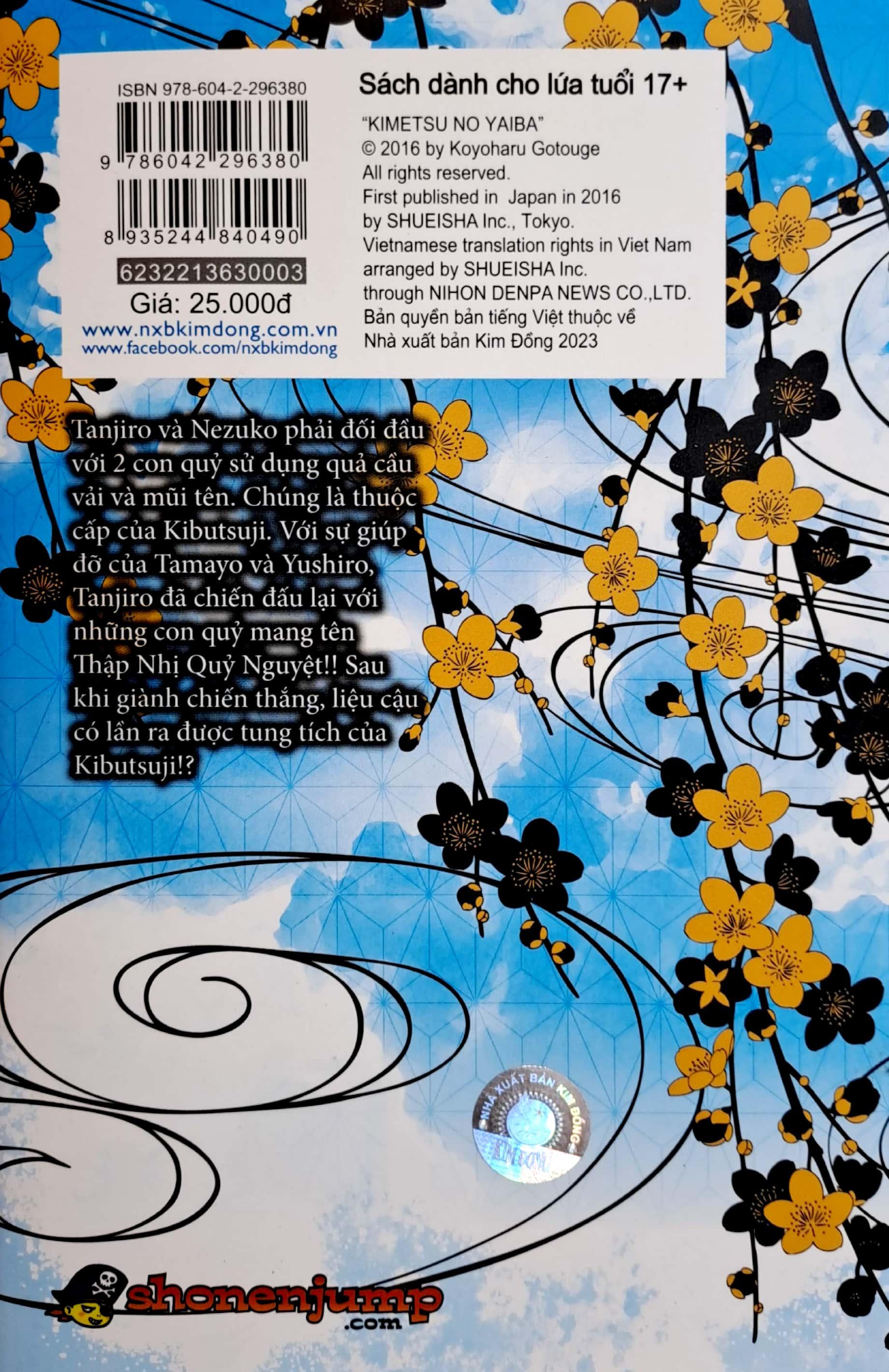 Mua tại TiktokTanjiro và Nezuko phải đối đầu với 2 con quỷ sử dụng quả cầu vải và mũi tên. Chúng là thuộc cấp của Kibutsuji. Với sự giúp đỡ của Tamayo và Yushiro, Tanjiro đã chiến đấu lại với những con quỷ mang tên Thập Nhị Quỷ Nguyệt!! Sau khi giành chiến thắng, liệu cậu có lần ra được tung tích của Kibutsuji!? “Xin chào, tôi là Gotouge đây. Sau khi gây rắc rối tới nhiều người và nhận được biết bao lời cổ vũ, cuối cùng tập 3 cũng đã lên kệ!! Cảm ơn mọi người! Tôi cũng rất bất ngờ đó! Lúc đầu tôi đã nghĩ là chắc hỏng rồi, không được đâu. Nhưng sau khi tự thưởng cho bản thân yếu đuối một quả chuối thật ngon, tôi đã phấn chấn lên rất nhiều và tự nhủ phải cố gắng hơn nữa!” (Koyoharu Gotouge)