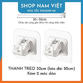 Đóng gói: 1 thanh treo rèm kèm 2 miếng dán tường. ️ Tính năng Thanh treo dài dùng để treo rèm, treo khăn hoặc các vật dụng gia đình khác. Có thể dùng trong nhà bếp để treo khăn bếp, dao thớt, muỗng đũa nĩ Kèm theo 2 miếng dán tường để treo thanh treo. Thanh treo có thể điều chỉnh kích thước dài ngắn theo ý thích. ️ Thông số Kích thước thanh treo: xem trên ảnh. Chất liệu: nhựa ️ Cách sử dụng: Các bề mặt nên dùng: gạch men, kính, thủy tinh, gỗ phẳng. Các bề mặt không khuyến khích: sơn nước, quét vôi, gỗ có vâ Lau sạch bề mặt trước khi dán