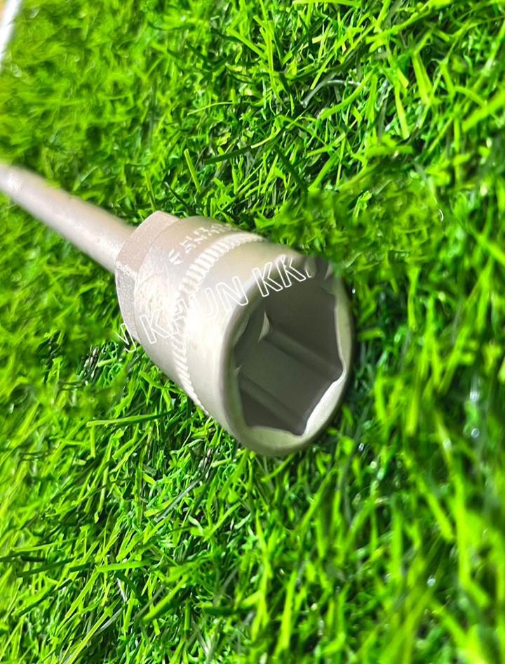 - Vật liệu molypden mạ crôm đen tráng cứng. - Cờ lê ổ cắm cho vít lục giác. - 10, 11,12, 13,14, 15, 16, 17, 19, 21 mm