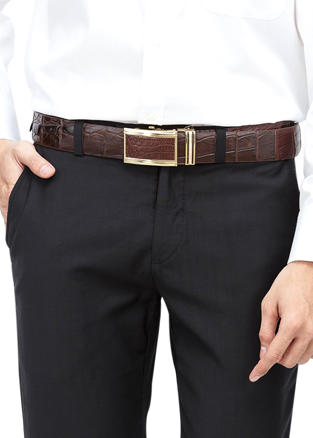 Thắt Lưng Da Cá Sấu Khoá Inox cao cấp màu nâu