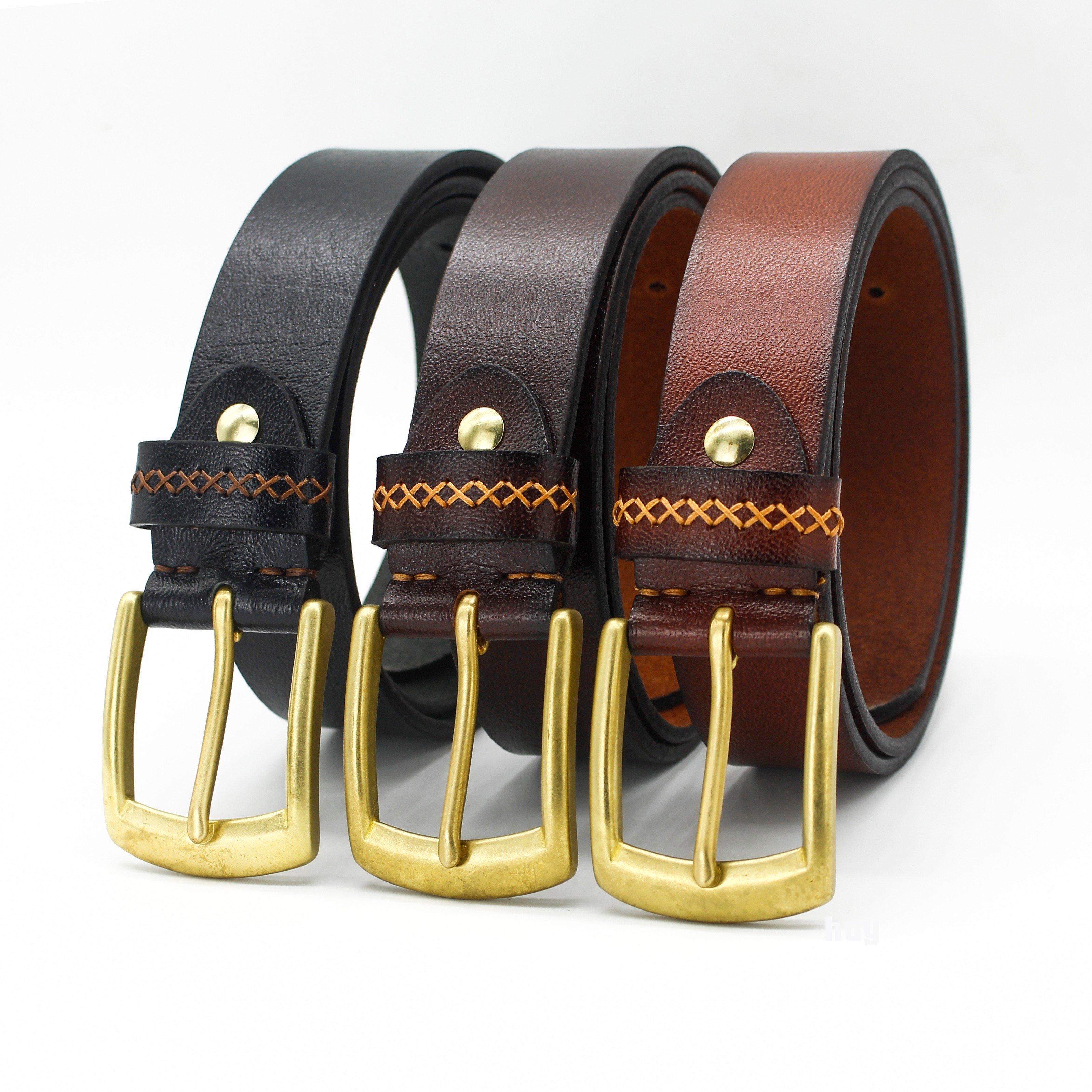 Dây da thắt lưng nam da bò sáp DHM-040 | Khoá kim đầu đồng nguyên khối | Bảo hành 12 tháng