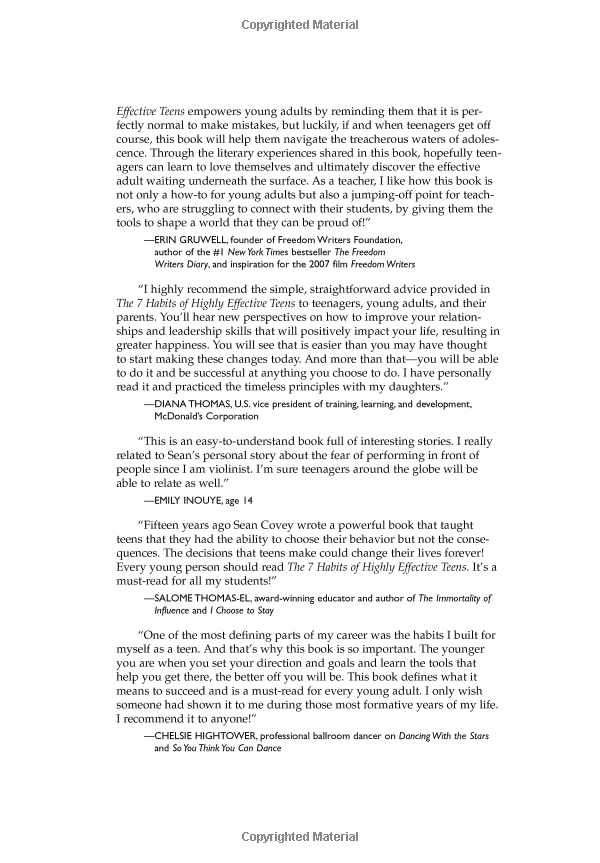 “If The 7 Habits of Highly Effective Teens doesn’t help you, then you must have a perfect life already.”