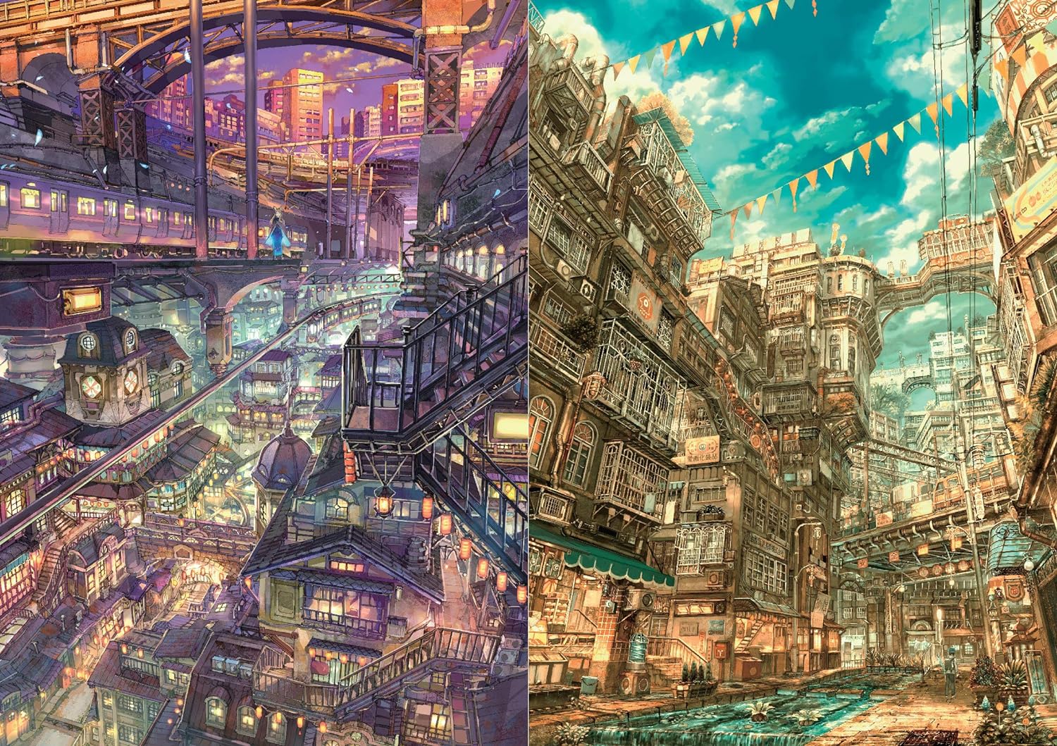 Munashichi is an illustrator who became popular drawing steampunk-like fantasy worlds with an overwhelming fineness and detail. Munashichi is well known in the anime and gaming industry for the concept design for the acclaimed video games Tales of Zestiriaand Tales of Berseria, the concept artwork for the anime television series Princess Principals, which was licensed by Sentai Filmworks in North America and MVM films in UK. Gigantic, sky-high buildings, deeply extended caverns, complexly crossed pipes, factory scenes, abandoned places and nostalgic townscapes are themes commonly seen in Munashichi’s illustrations. This book includes Munashichi’s past illustration works, concept images for games and anime series, original works and newly drawn illustrations just for this book.