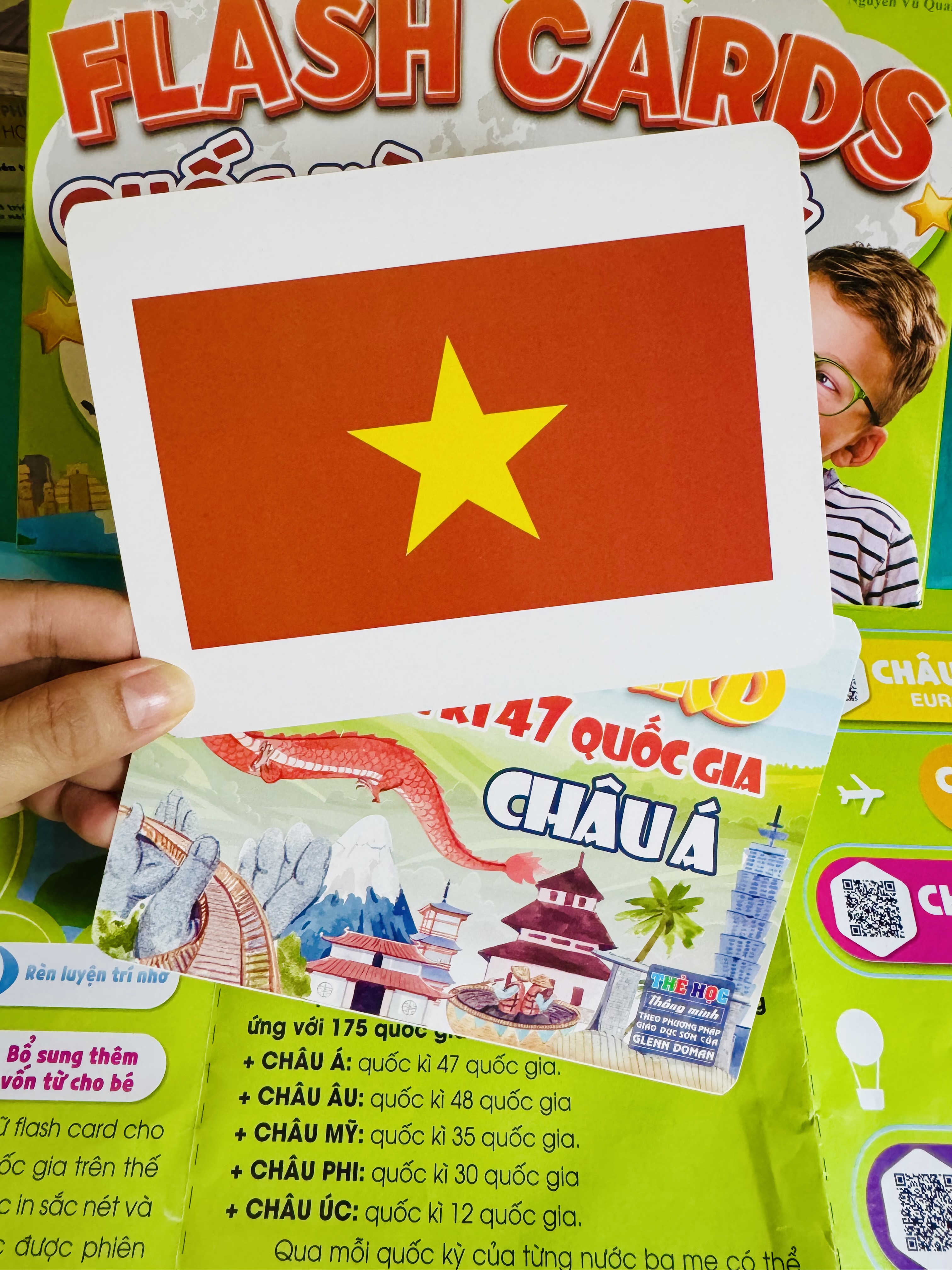 Với những ưu việt trong thiết kế và cách dạy, Bộ Thẻ Học Quốc kỳ Các nước Song ngữ TUANVIET BOOKS sản phẩm độc đáo và hữu ích, được thiết kế đặc biệt để giúp bạn và con em khám phá thế giới qua các ngôn ngữ và quốc kỳ của 178 quốc gia trên 5 châu lục theo chuẩn Glenn Doman.