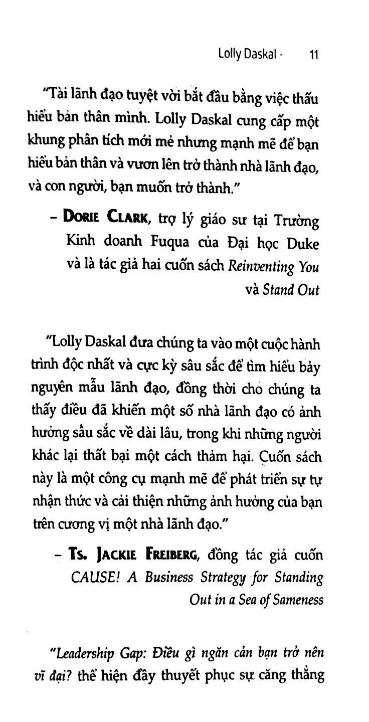 Theo Daskal, nhiều khi những tố chất lãnh đạo bạn cho là nổi trội nhất của mình lại là thứ cản trở bạn vươn tới những điều lớn lao; trong khi những gì bạn coi là lỗ hổng, là khuyết điểm lại có thể trở thành nền tảng cho sự vĩ đại - miễn rằng bạn biết cách lấp đầy chúng, biến chúng thành ưu thế của mình.