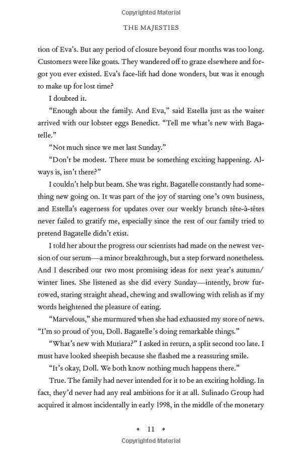 Journeying from the luxurious world of the rich and powerful in Indonesia to the spectacular shows of Paris Fashion Week, from the sunny coasts of California to the melting pot of Melbourne's university scene, The Majesties is a haunting and deeply suspenseful novel about the dark secrets that can build a family empire - and also bring it crashing down.
