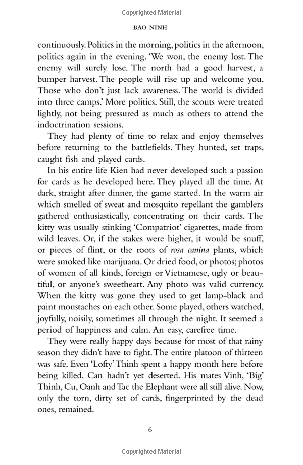 Kien’s job is to search the Jungle of Screaming Souls for corpses. He knows the area well - this was where, in the dry season of 1969, his battalion was obliterated by American napalm and helicopter gunfire. Kien was one of only ten survivors. This book is his attempt to understand the eleven years of his life he gave to a senseless war.