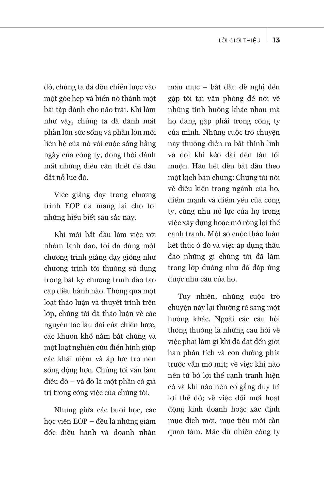 Các ví dụ và câu chuyện trong cuốn sách này chủ yếu dựa trên kinh nghiệm giảng dạy trong vòng 5 năm tại một trong những chương trình đào tạo toàn diện dành cho lãnh đạo cấp cao tại Trường Kinh doanh Harvard. Vì vậy, các bài học và phân tích trong cuốn sách mang tính thực tế cao, đã được kiểm chứng.