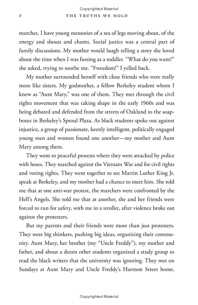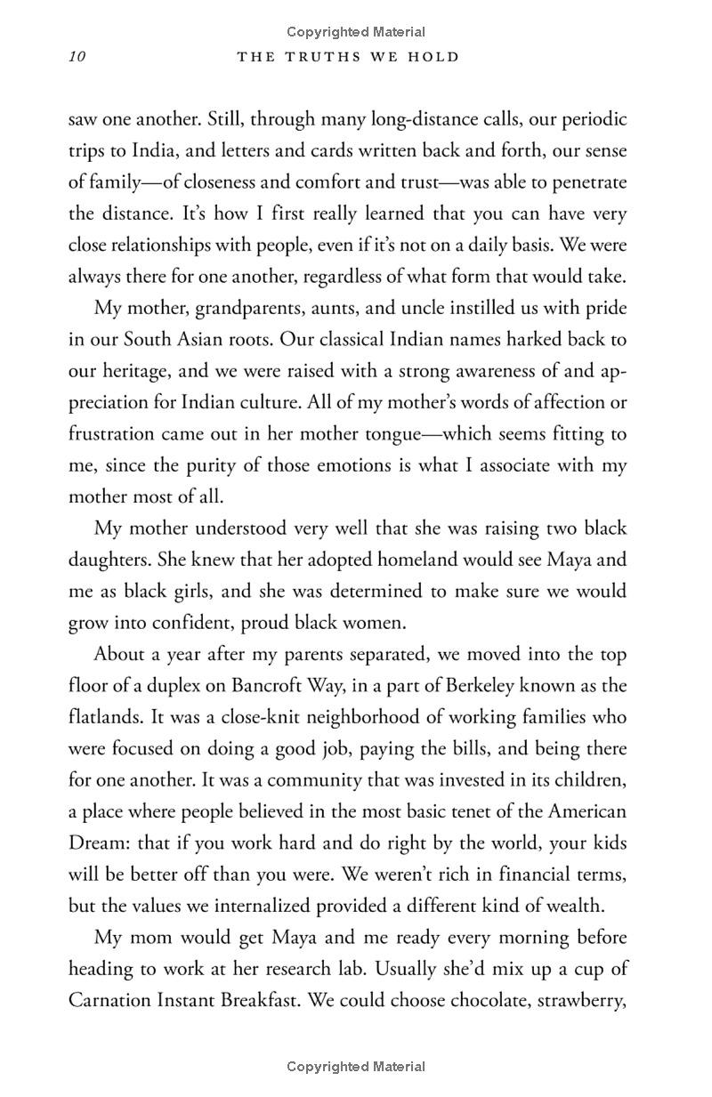 Vice President Kamala Harris's commitment to speaking truth is informed by her upbringing. The daughter of immigrants, she was raised in an Oakland, California community that cared deeply about social justice; her parents--an esteemed economist from Jamaica and an admired cancer researcher from India--met as activists in the civil rights movement when they were graduate students at Berkeley. Growing up, Harris herself never hid her passion for justice, and when she became a prosecutor out of law school, a deputy district attorney, she quickly established herself as one of the most innovative change agents in American law enforcement. She progressed rapidly to become the elected District Attorney for San Francisco, and then the chief law enforcement officer of the state of California as a whole. Known for bringing a voice to the voiceless, she took on the big banks during the foreclosure crisis, winning a historic settlement for California's working families. Her hallmarks were applying a holistic, data-driven approach to many of California's thorniest issues, always eschewing stale "tough on crime" rhetoric as presenting a series of false choices. Neither "tough" nor "soft" but smart on crime became her mantra. Being smart means learning the truths that can make us better as a community, and supporting those truths with all our might. That has been the pole star that guided Harris to a transformational career as the top law enforcement official in California, and it is guiding her now as a transformational United States Senator, grappling with an array of complex issues that affect her state, our country, and the world, from health care and the new economy to immigration, national security, the opioid crisis, and accelerating inequality.