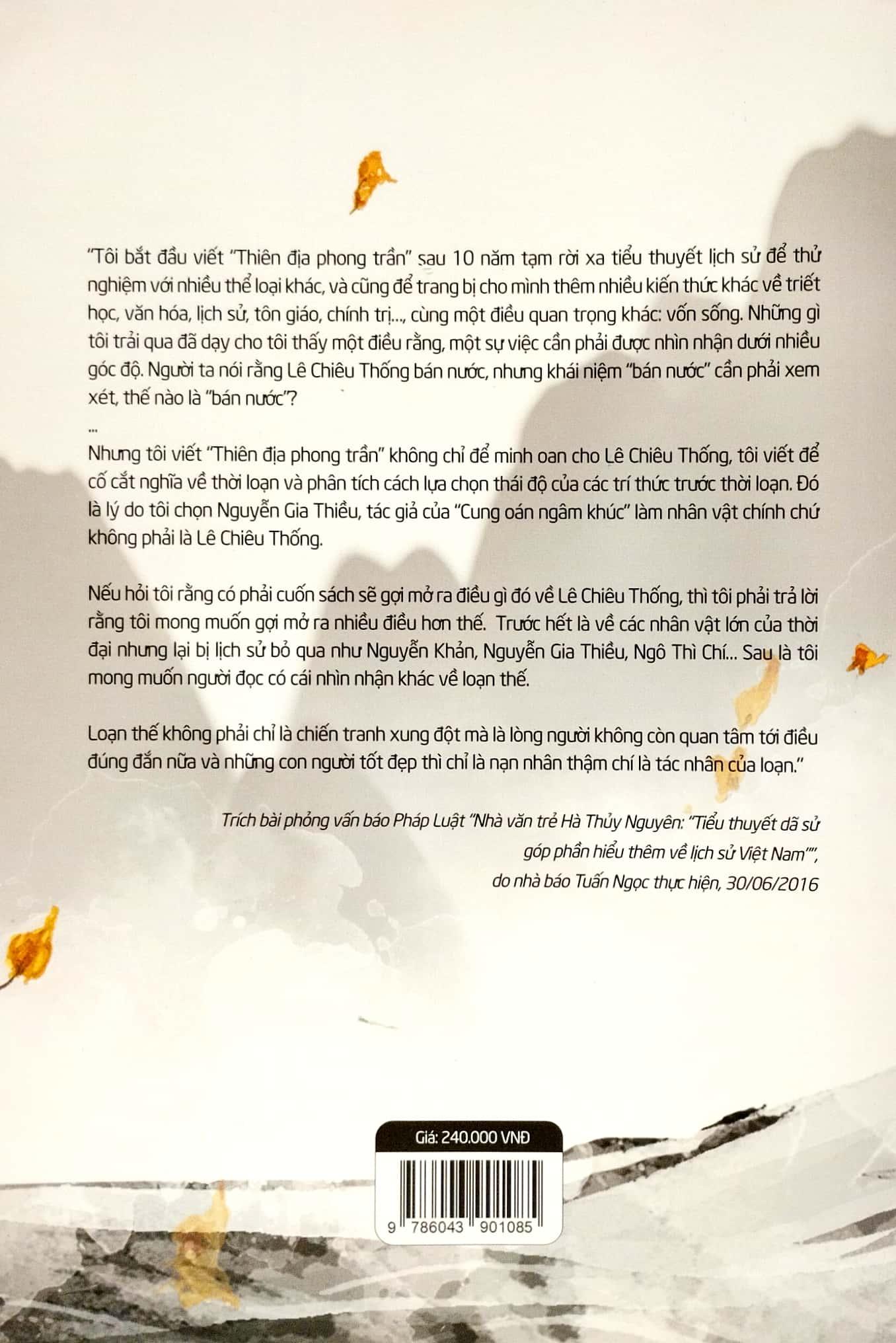 THÔNG TIN XUẤT BẢN: - Công ty phát hành: Nhã Nam - Tác giả: Trần Nghiên Nhất - Dịch giả: Không Sơn - Nhà xuất bản: Hội Nhà Văn - Kích thước: 14 x 20.5cm