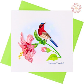 ✨Thiệp Giấy Xoắn Nghệ Thuật - Chim hút mật đỏ - size 15x5cm