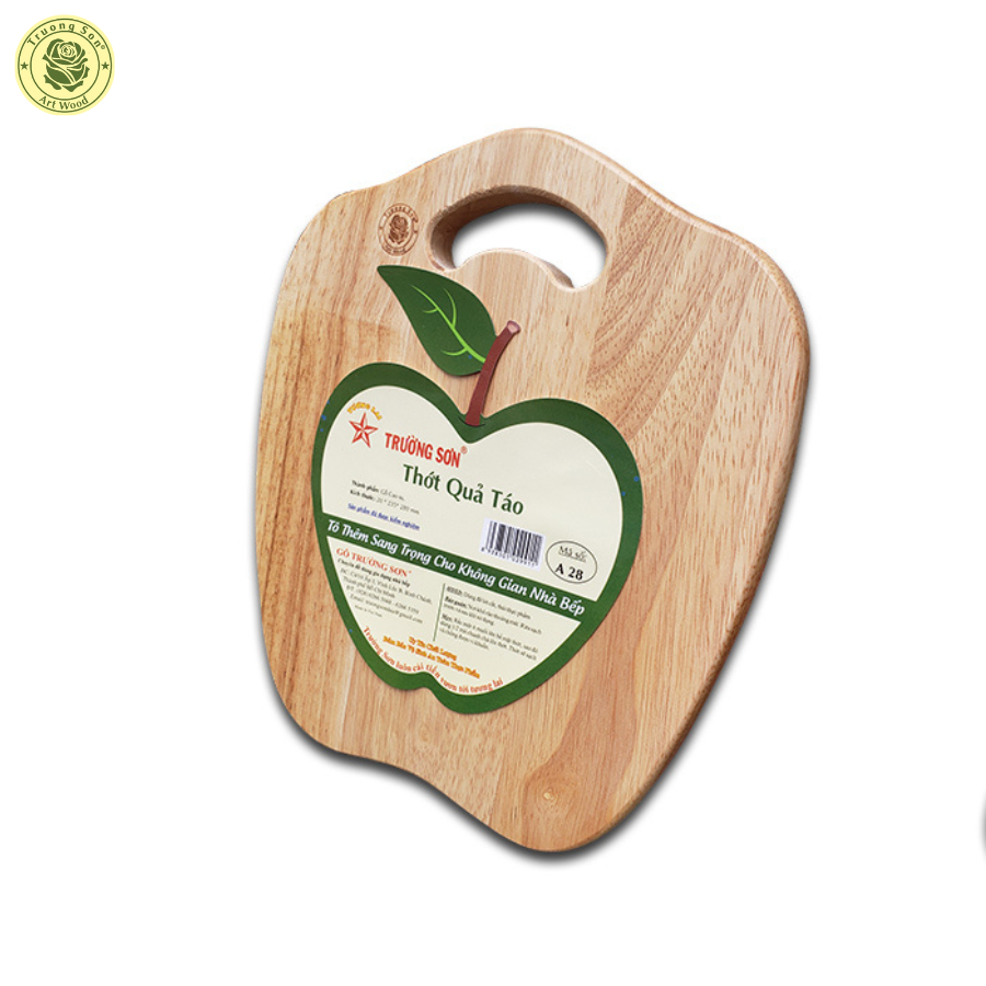 Thớt gỗ Cao Su Quả Táo được lựa chọn các khối gỗ rắn tốt, 100% từ gỗ Cao Su, độ cứng tốt, khi xắt, thái thực phẩm sẽ ít để lại vết hằn của dao.