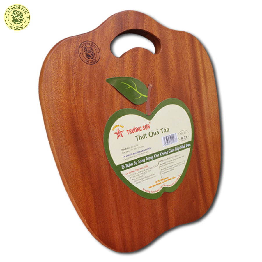 Thớt Gỗ Quả Táo được lựa chọn các khối gỗ rắn tốt, 100% từ gỗ Xà Cừ, độ cứng tốt, khi xắt, thái thực phẩm sẽ không đẻ lại hằn.