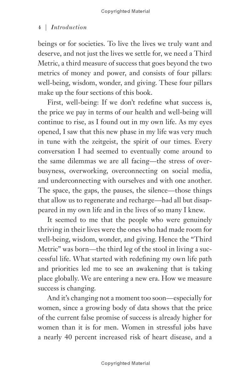 In Thrive, Arianna Huffington, the co-founder and editor-in-chief of the Huffington Post and one of the most influential women in the world, has written a passionate call to arms, looking to redefine what it means to be successful in today's world. She likens our drive for money and power to two legs of a three-legged stool. It may hold us up temporarily, but sooner or later we're going to topple over. We need a third leg - a Third Metric for defining success - in to live a healthy, productive, and meaningful life. In this deeply personal book, Arianna talks candidly about her own challenges with managing time and prioritising the demands of a career and two daughters. Drawing on the latest groundbreaking research and scientific findings in the fields of psychology, sports, sleep and physiology that show the profound and transformative effects of meditation, mindfulness, unplugging and giving, Arianna shows us the way to a revolution in our culture, our thinking, our workplaces, and our lives.