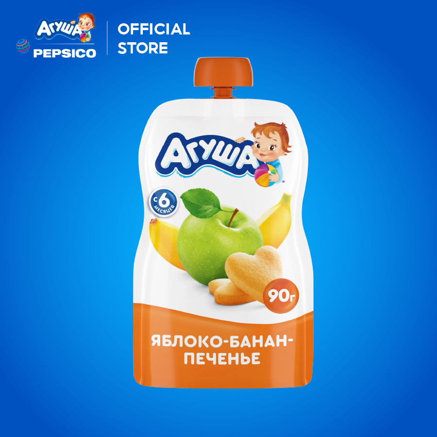 Trái cây nghiền vị táo, chuối và bánh quy Agusha 90g dành cho bé từ 6 tháng trở lên A. THÔNG TIN SẢN PHẨM - Thương hiệu: AGUSHA - Xuất xứ: Nga - Trọng lượng: