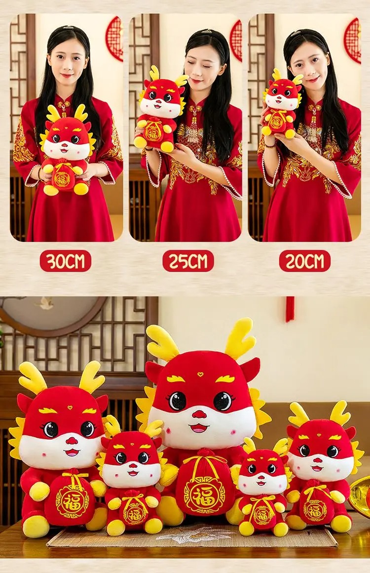 ✨Thú nhồi bông rồng thần tài ôm túi tiền đáng yêu - Size từ 22cm đến 70cm - Quà tặng gấu bông rồng đỏ may mắn êm mịn