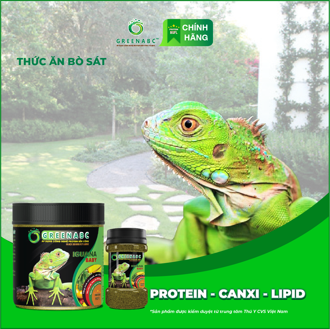 Sản phẩm GREENABC cung cấp các giá trị dinh dưỡng bền vững cho Iguana với sự kết hợp 80% thành phần có nguồn gốc thực vật và 20% thành phần có nguồn gốc động vật từ côn trùng, giúp cho Iguana Baby:      + Lột da thường xuyên, tăng kích cỡ nhanh, lên màu đẹp.      + Với hàm lượng Canxi 100% nguyên chất có trong BSFL giúp gai bung, đều, ngăn ngừa các bệnh thường gặp như teo đuôi, MBD, sạn, ...      + Kích thích khứu giác, tăng cường vị giác, giúp Iguana ăn ngon miệng hơn. Đặc biệt với hương thơm tự nhiên, Greenabc kích thích khứu giác của các Iguana Abino T-, giúp các bé ăn tốt hơn.       + Tiêu hóa tốt, cơ thể hấp thụ toàn bộ dưỡng chất cần thiết, giúp cơ thể phát triển toàn diện.      + Cơ thể săn chắc, khỏe mạnh.      + Giảm thiểu mùi hôi của phân và cơ thể.