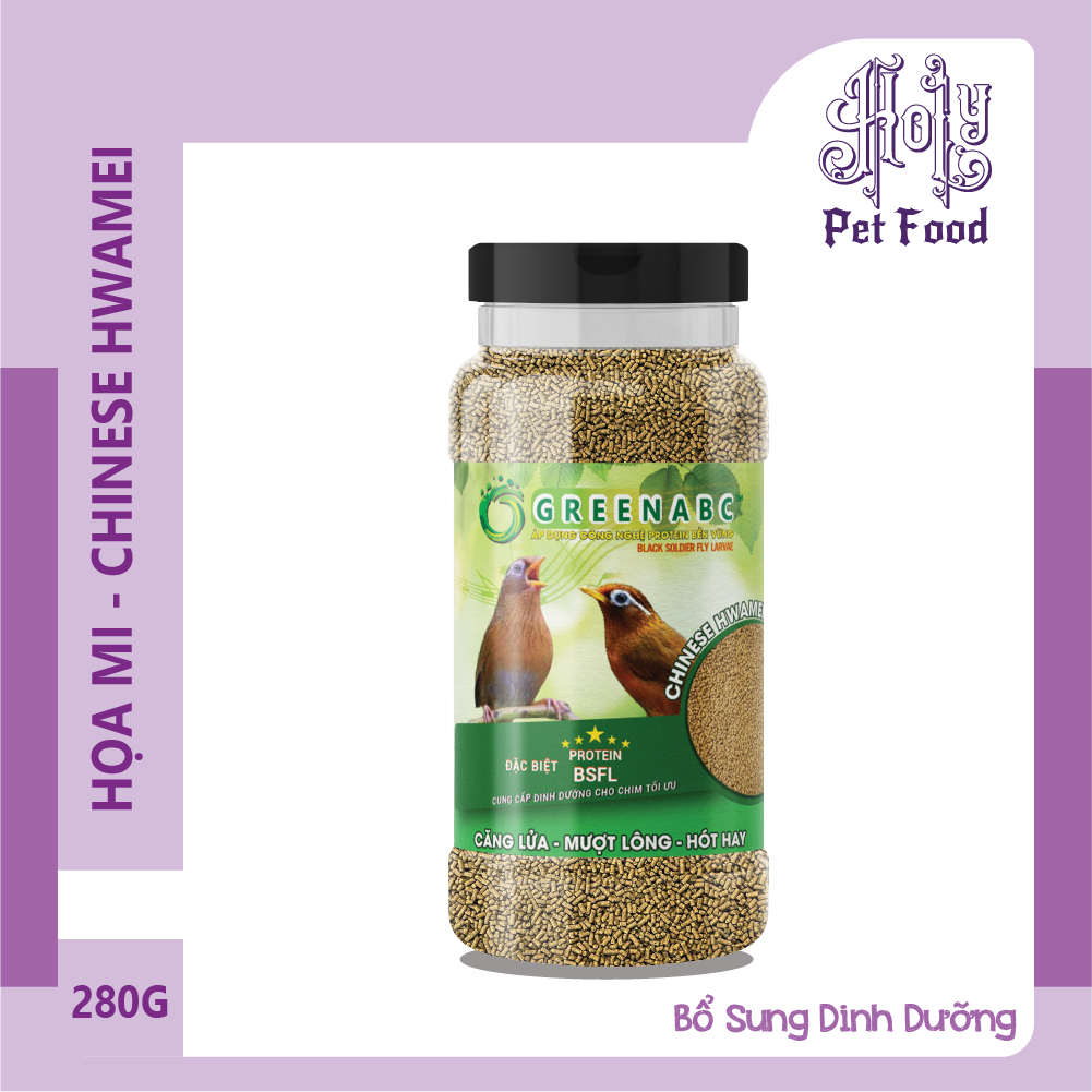 GREENABC - THỨC ĂN CHIM HỌA MI HÀNG NGÀY & BỔ SUNG GREENABC là thức ăn cao cấp dành cho CHIM HỌA MI. Đặc biệt sản phẩm GREENABC được sản xuất theo phương pháp Áp dụng công nghệ PROTEIN bền