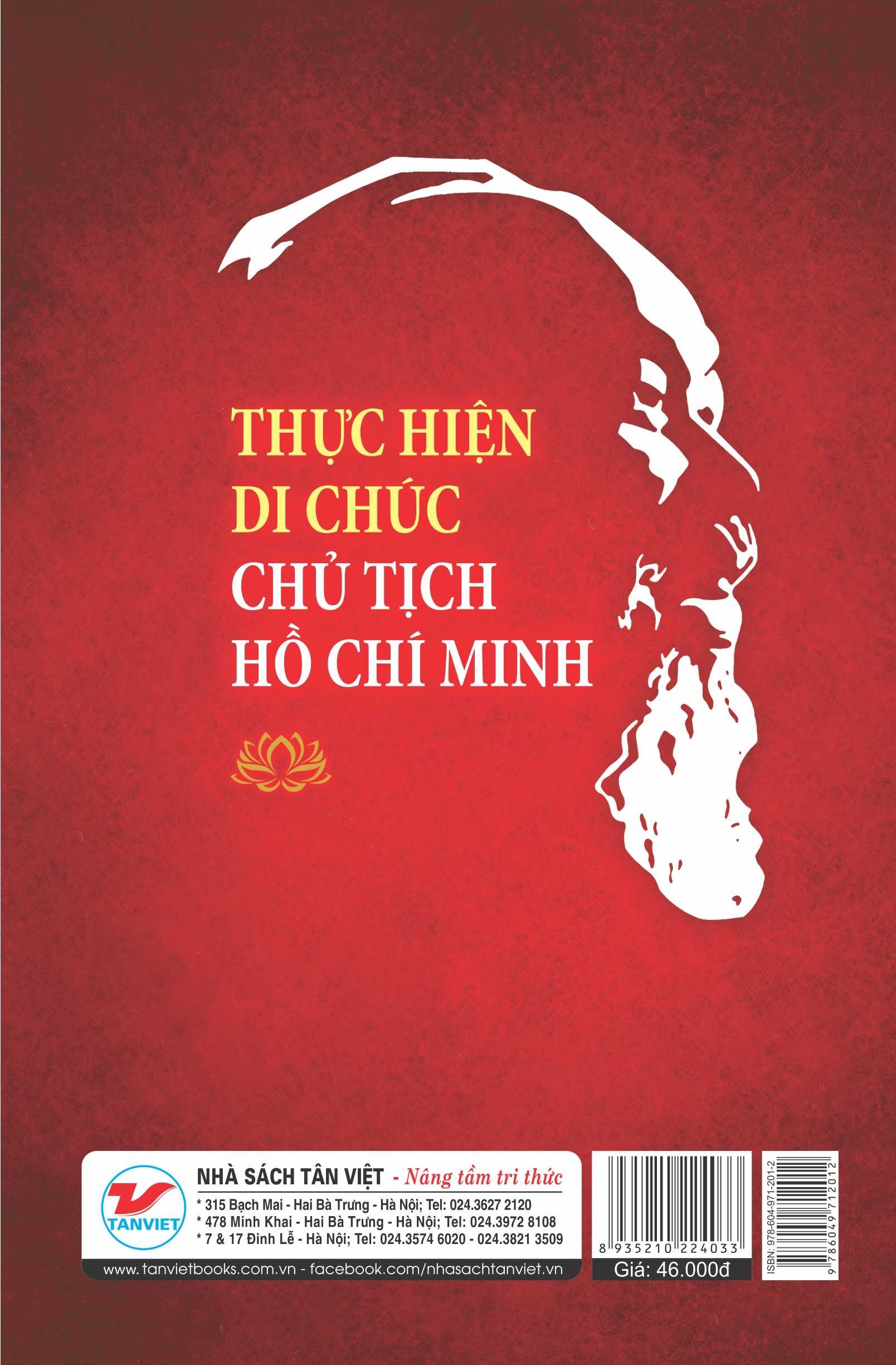 Nằm trong "Tủ Sách Bác Hồ", Cuốn sách “Thực Hiện Di Chúc Chủ Tịch Hồ Chí Minh”, là một tác phẩm viết về những đường lối phát triển đất nước theo di chúc của Chủ Tịch Hồ Chí Minh. Cuốn sách do Nhà sách Tân Việt và NXB Văn Học liên kết hợp tác phát hành. Sách được xuất bản lần đầu năm 2017 và đã được công chúng nồng nhiệt đón nhận. Cuốn sách đã trở nên thân thiết với các bạn đọc với nhiều lứa tuổi khác nhau.
