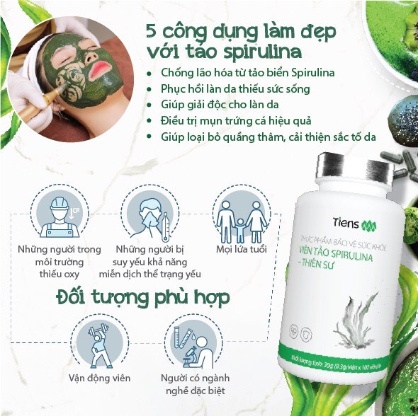 Tên Sản phẩm: Tảo Spirulina – Thiên Sư Đối tượng sử dụng: Người trưởng thành cần bồi bổ, cần tăng cường sức khỏe, tăng cường sức đề kháng cho cơ thể, người làm việc trong